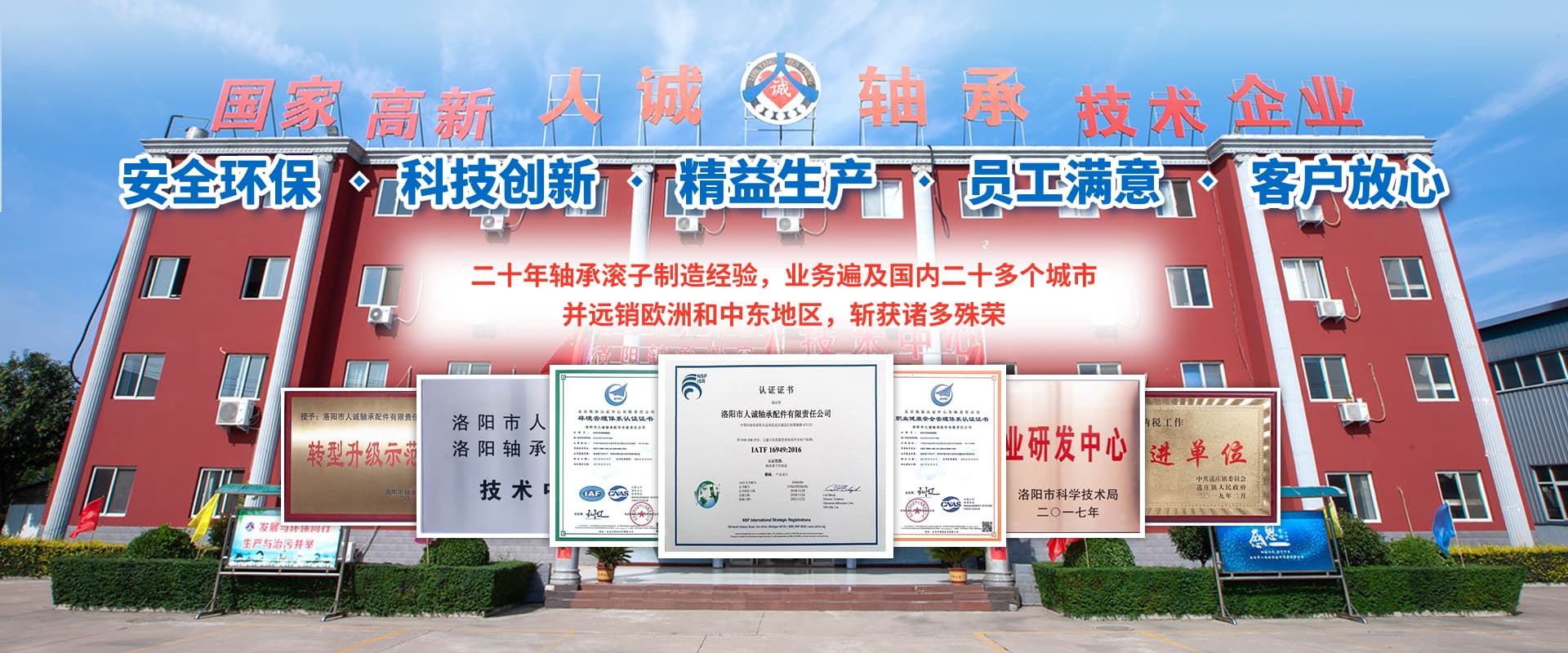 •   洛陽市人誠軸承配件有限責任公司成立于2003年,2015年由洛陽搬遷至孟津循環經濟區送莊鎮梁新路,占地60畝,建筑面積20000余平方米。公司專注生產高精圓錐軸承滾子,可根據客戶需求研發及來樣加工,年產精品滾子4億粒。  我們始終堅持“安全環保、科技創新、精益生產、員工滿意、客戶放心”的經營理念。先后與河南科技大學、洛陽師范學院、方智測控合作,并與國家洛陽軸承研究所聯合成立“技術中心”,建立了良好的產學研合作機制,為公司的創新發展打下了堅實的基礎。  2018年公司被認定為國家高新 技術企業,通過了IATF16949:2016質量管理體系、環境管理體系、職業健康安全管理體系、知識產權管理體系等多項認證。擁有完善的檢測手段,先進的工藝,穩定的設備,優良的服務。公司董事長葉會卿為洛陽市工商聯副主席,洛陽市軸承滾子行業協會會長,法人李愛芳女士從事軸承滾子制造30余年,積累了豐富的生產管理經驗,誠實守信、務實、合作、共贏的作風深受業界好評。